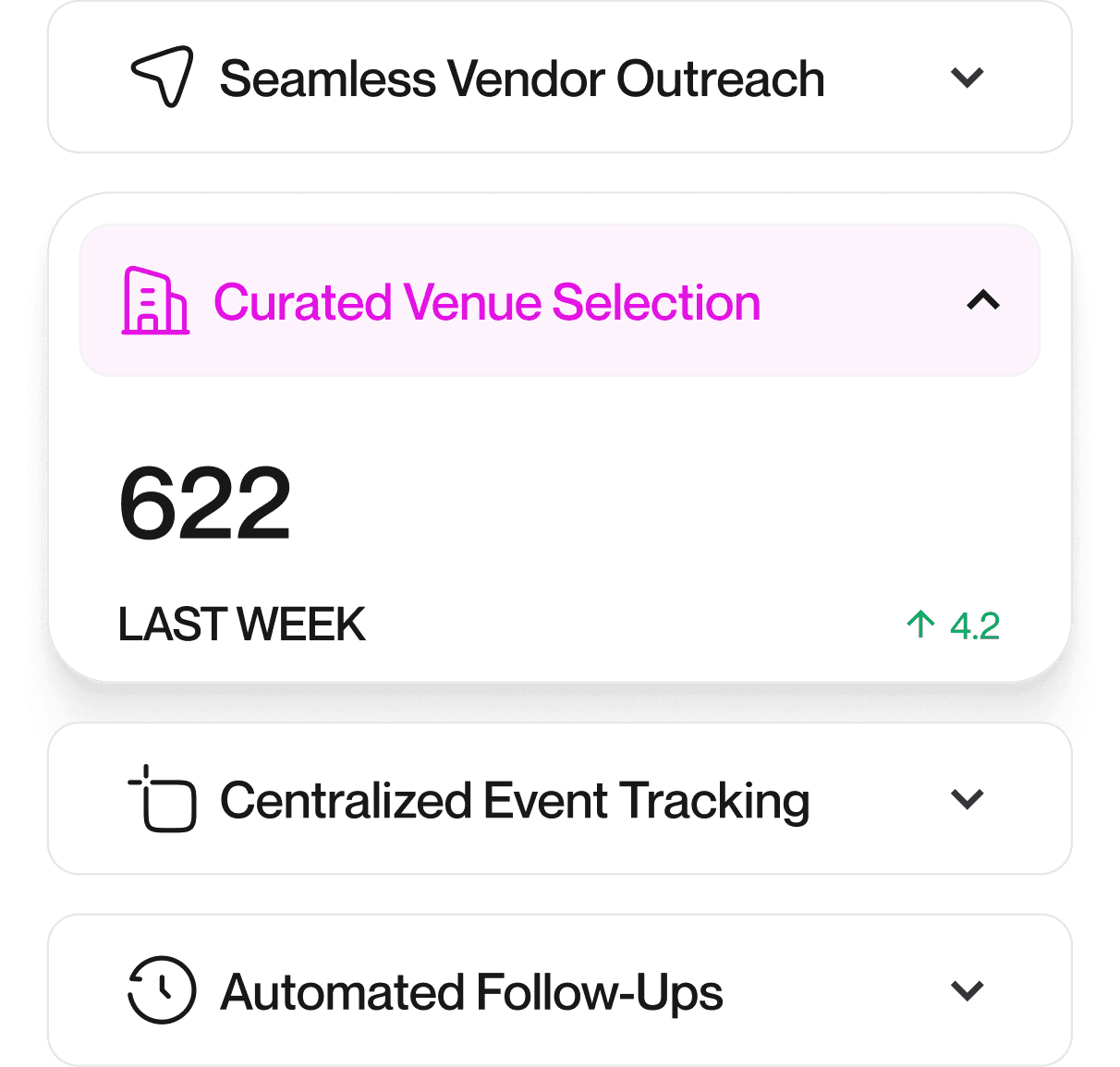 Instead of vetting ChatGPT recommendations, directories and email threads, Reserved gives your team one unified home base for sourcing and managing events.